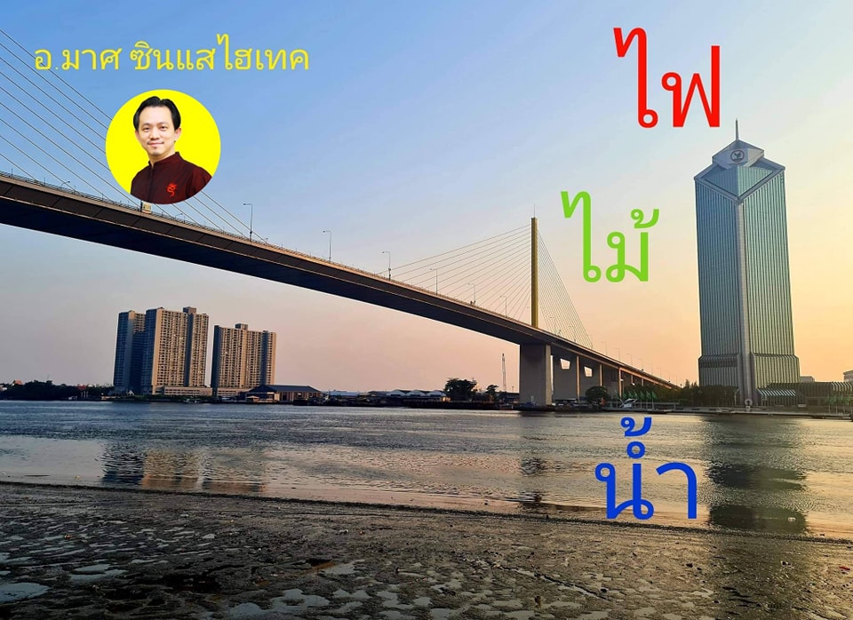 อาคารธนาคารกสิกรไทยตั้งอยู่ริม แม่น้ำเจ้าพระยา (ธาตุน้ำ) และอยู่ติดกับ สะพานพระราม 9 (ธาตุไม้) ซึ่งตามหลักการแล้ว น้ำก่อเกิดไม้ หมายถึงพลังงานที่ส่งเสริมซึ่งกันและกันอย่างต่อเนื่อง